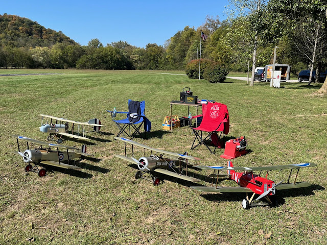 SMAC members Steve B. and Jim R. represented the WWI RFC/RAF with a selection of 1/6 scale electric powered models at the Fall Dawn Patrol. This even is hosted by the Cincy Aeromodellers at their field in the Whitewater River valley near Harrison, OH (northwest of Cincinnati).